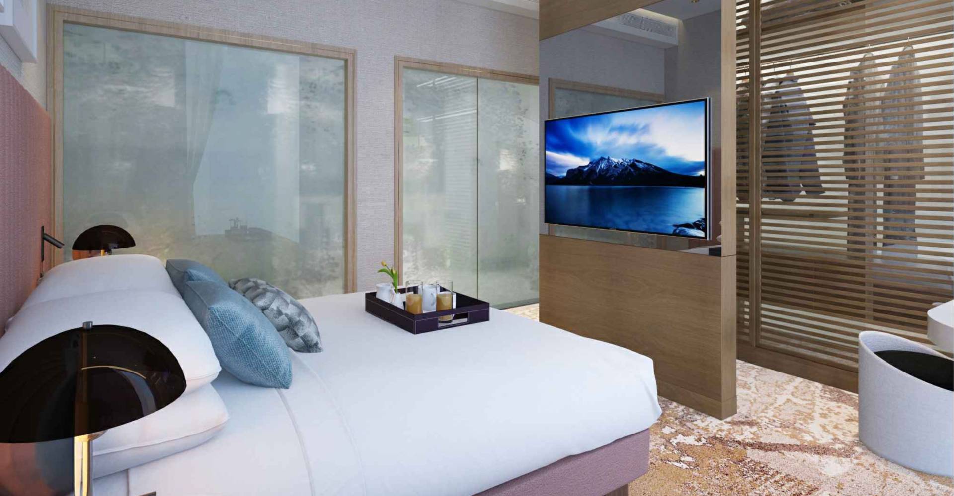 Embassy Suites is a chain of all-suite hotels. All guest rooms of this chain have a separate living area as well as a sleeping area. An all-suite hotel By Embassy Suites by Hilton, where you get to try our luxurious accommodation. If you love spacious, glass windows with natural light, you have the choice of our atrium-style layout suites. Embassy Suites Doha has an excellent location on the corner of Jabr Bin Mohamed Street and Al Dostour Street with a spectacular view of the corniche and amazing visibility from both roads. Within a 1 km radius of the hotel, there are many significant attractions such as Souk Waqif and Qatar National Museum